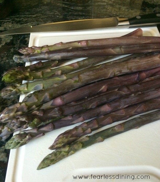 Asparagus is another spring vegetable I look forward to all year round. You can find it in purple, white, and the most common green variety, and each has a slightly different flavor profile worth exploring. Just know that purple asparagus will turn green when you cook it, so enjoy that color while it lasts on the cutting board.