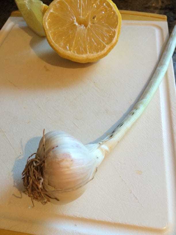 Another tasty spring tradition is buying green garlic at our farmer’s market. The bulb pictured above was from towards the end of last season, when the bulbs grow larger and more fully formed. Early in the spring, they are much smaller, and green garlic resembles a tiny leek more than the garlic bulb most people recognize. The flavor is also a bit milder and fresher early in the season, which makes it wonderful raw in dressings or stirred into soft scrambled eggs.